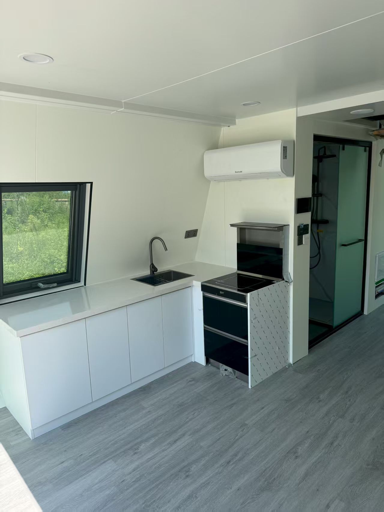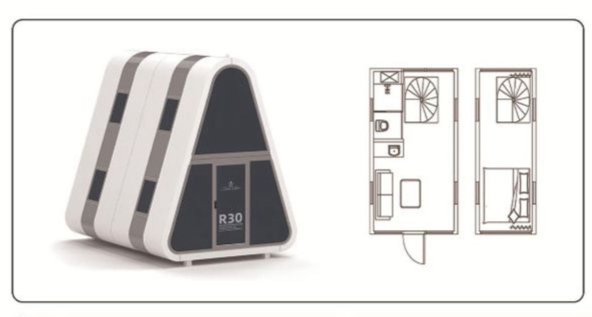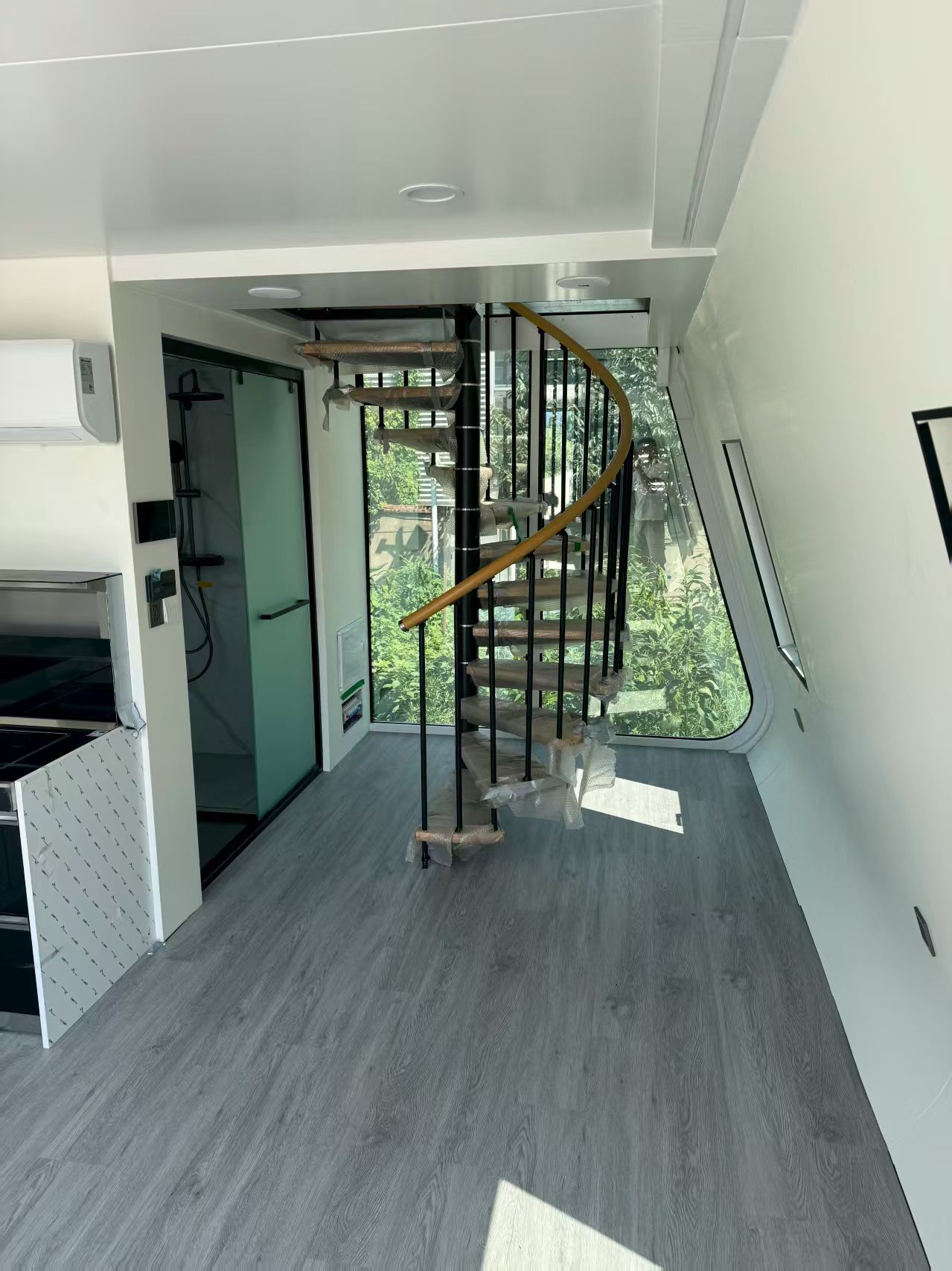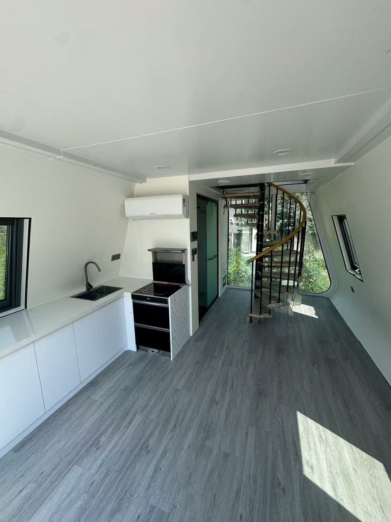 קומה ראשונה – כוללת מטבחון, חדר רחצה משולב שירותים, פינת ישיבה ואירוח, כולל אפשרות לספת שינה נפתחת.